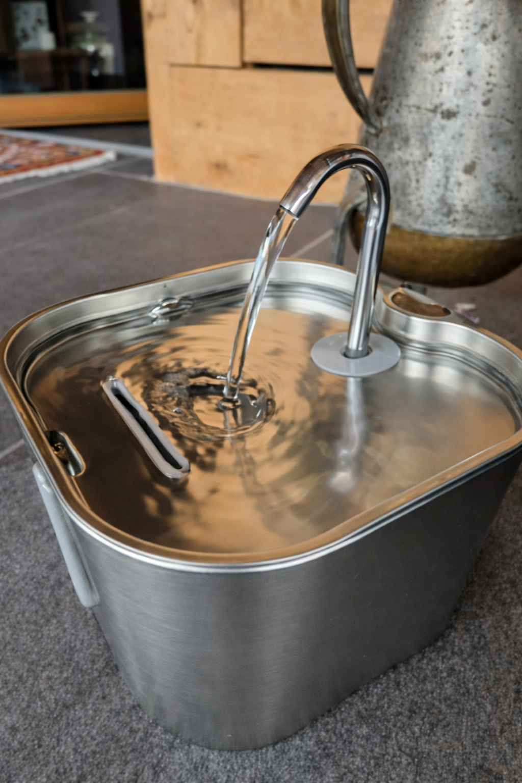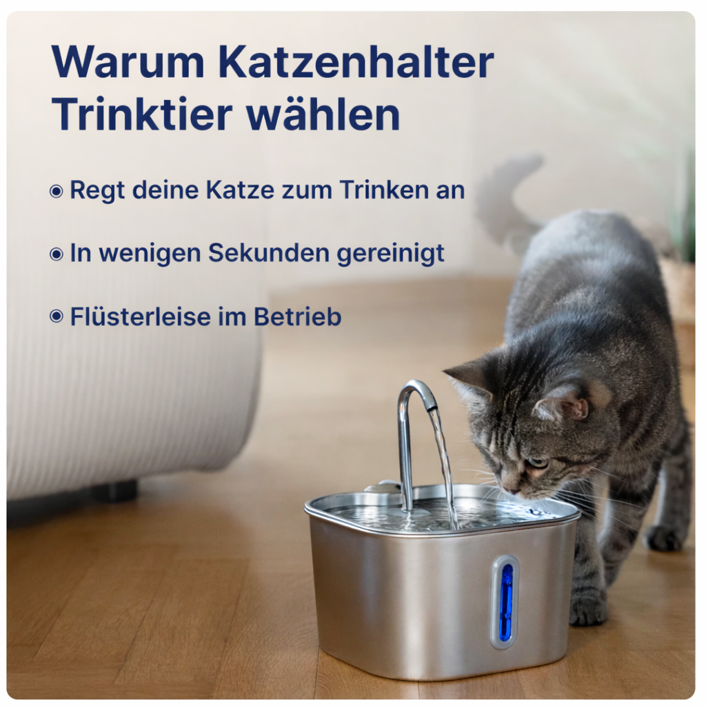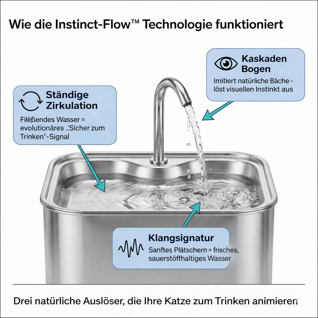 Fließendes Wasser spricht ihre wilde Seite an – animiert sie dazu häufiger und mit mehr Freude zu trinken.
